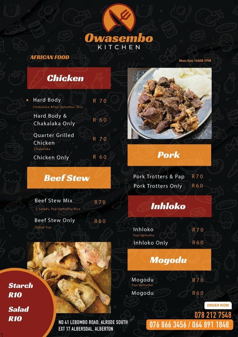 Our meals are prepared with love by Owasembo Kitchen.